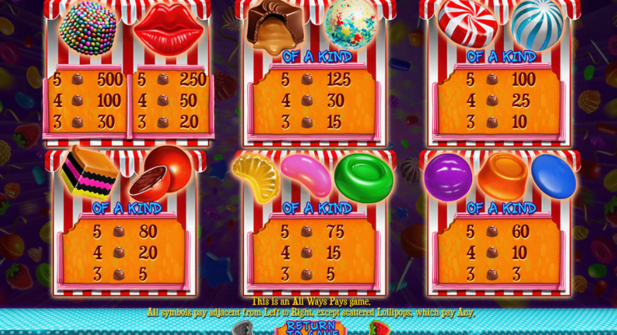 There is a lot more sweetness when players trigger free spins. This luscious feature is activated when a player turns three or more scatters. Up to 16 free spins are awarded.