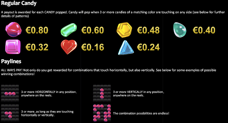 Want similar games? This is not the most popular style of drop-based slot game on the market, but it has several advantages. With low volatility and the ability to create major chain reactions on the grid, this type of drop-based slot game has a very active gameplay that may be enjoyed by both novices and experts.Other games in the style include Play’n Go’s insane Energoonz and, similarly to Sweet Treats, Genesis Gaming’s Sugar Smash.