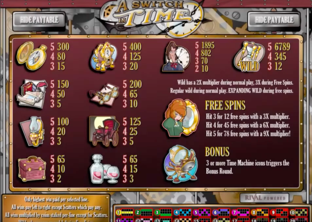 Inspired by the Victorian era in the 19th century, A Switch In Time features five reels with 20 pay lines. Rival Gaming software powers this video slot machine. This game can be played for real money online, plus using mobile smartphones and tablets.If you are not familiar with the 19th century, specifically the Victorian era we will give you an overview. The Victorian era was the period of Queen Victoria’s reign that took place from 1837 through 1901 in the United Kingdom. Most historians know the Victorian era as a time where there are much peace and prosperity just like in the 1990s in the United States of America.