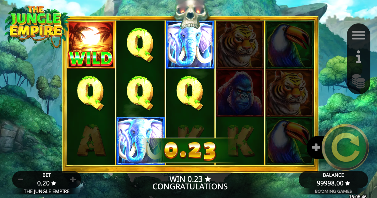 Booming Games has developed a new jungle-themed video slot called The Jungle Empire, that was released on 08/12/2022. There is a lot of anticipation among players, and our review will cover important details such as the maximum win, RTP rate, volatility, and other features of the game.