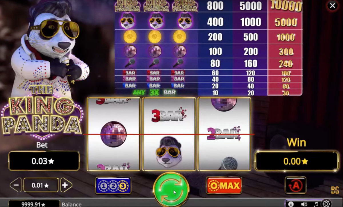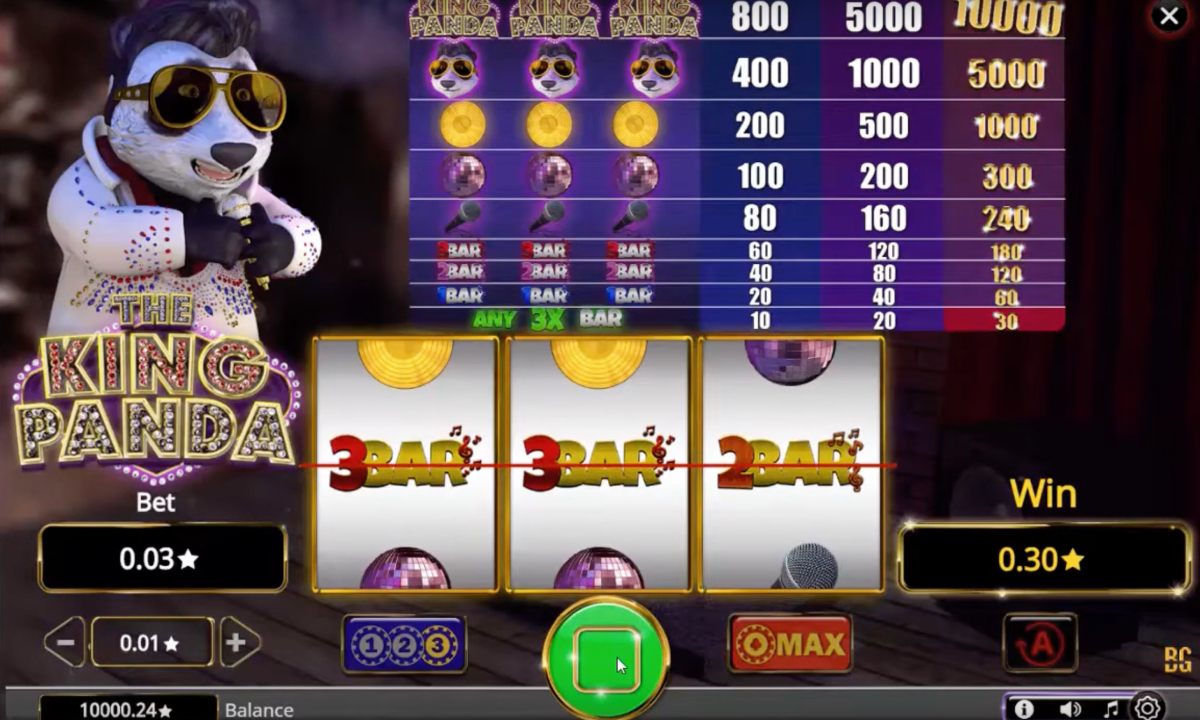 Additionally, winning is possible with any of the three bar icons that appear on the reels in the King Panda slot machine available for online play. This game does not require any downloads and can be played for free or with actual money. Although the slot may not offer an extensive range of features, it is still an enjoyable option for players.