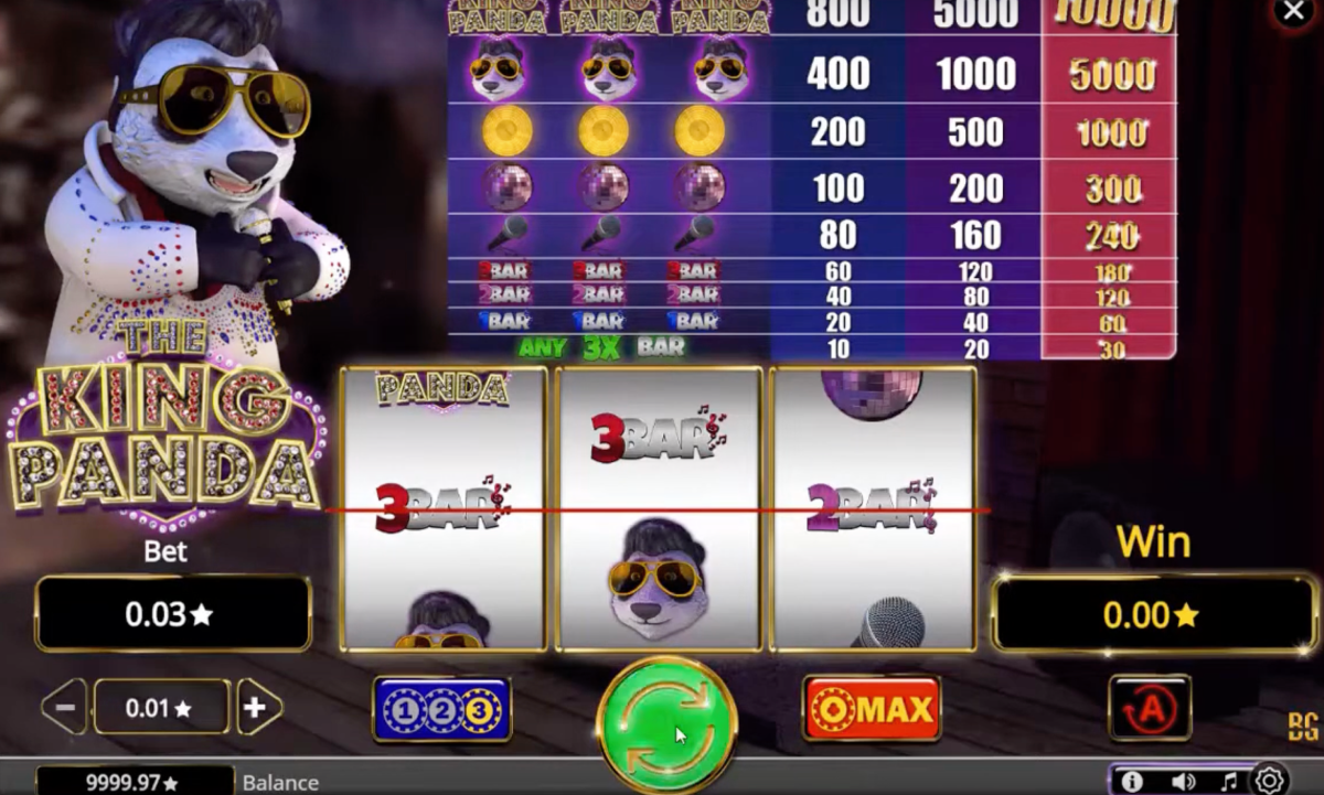 Booming Games has created an slot machine themed after the music and personality of the admired global singer and dancer, Elvis. However, in this game, Elvis is depicted as a fun-loving panda. Don’t let the fact that this slot machine only has three reels and one payline discourage you from playing. The game has plenty to offer, including frequent wins during the base game and entertaining animations that make the experience even more enjoyable.