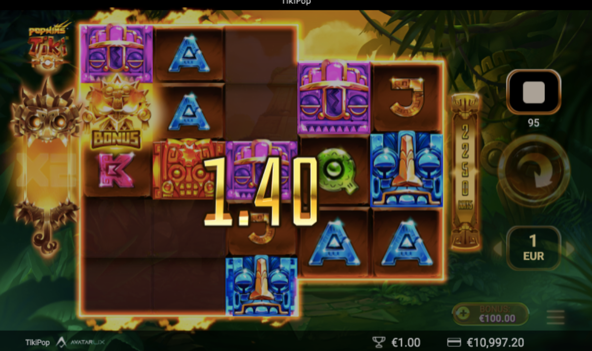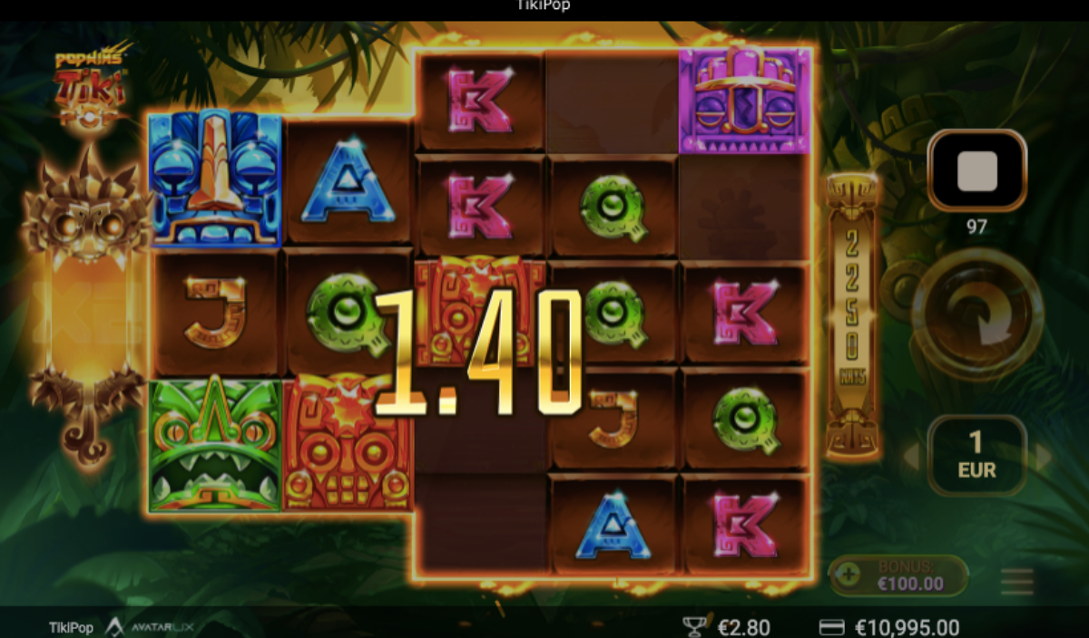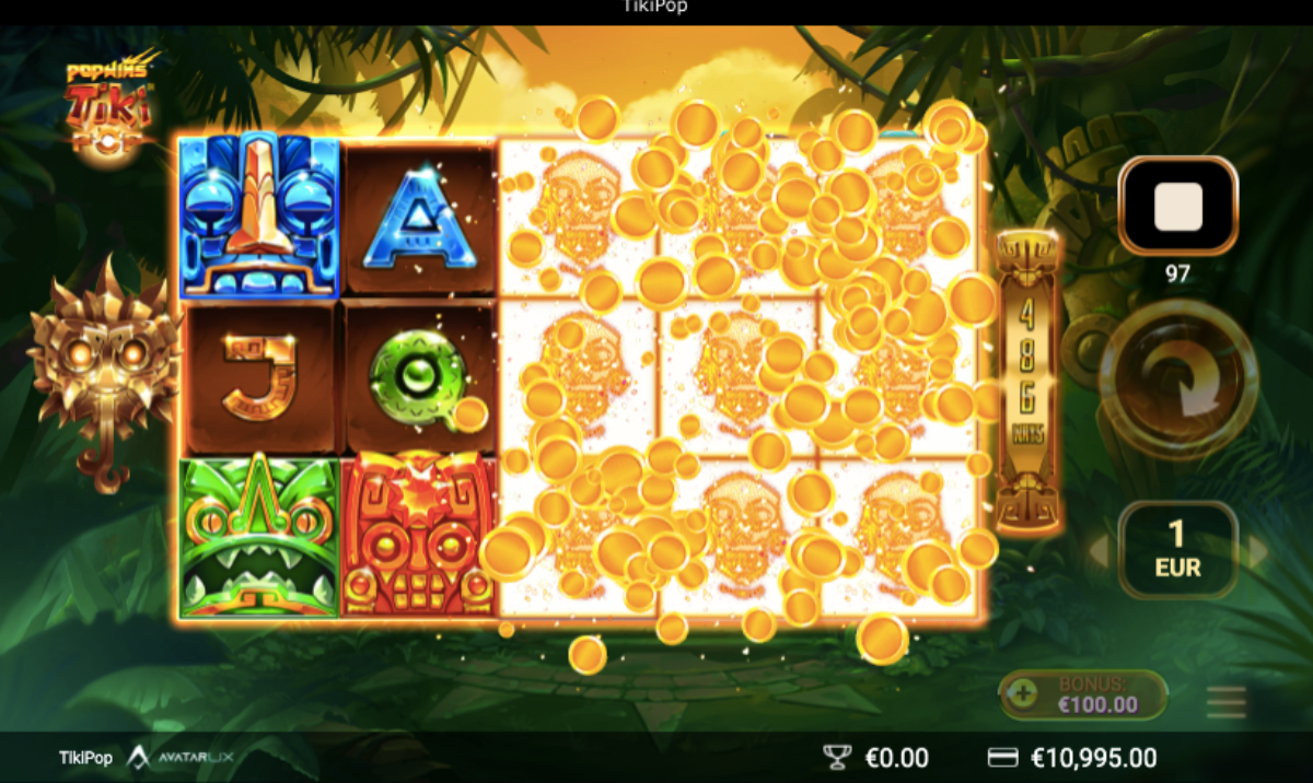 Hong Kong-based AvatarUX are known for their expanding reels PopWins mechanism which they incorporate into a lot of their games including this one, the TikiPop slot machine. If you’ve played any of their slots with this special feature before, you’ll know that when you spin in a winning combination the reels begin to expand and symbols beginning to pop. this will give you up to five rows of potential winners in the base game and up to seven rows during the special free spins round.