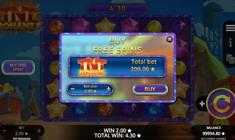 Booming Games has developed TNT Bonanza, which is very similar to the popular Sweet Bonanza slot game that started a new genre of slot games. It appears to be a copycat with a different appearance, as many developers have tried to replicate the successful formula of Sweet Bonanza.