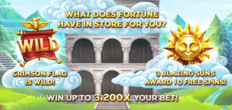 The design of this slot machine is reminiscent of Ancient Rome. Even though we don’t see her, Fortuna, the goddess of chance in the Roman pantheon, is the focus inside.The image is a view of an ancient temple with crumbling pillars and walls, as well as statues of green rolling hills, forests, and mountains. The game area’s three levels will catch the eye immediately, with symbols passing between the marble columns.