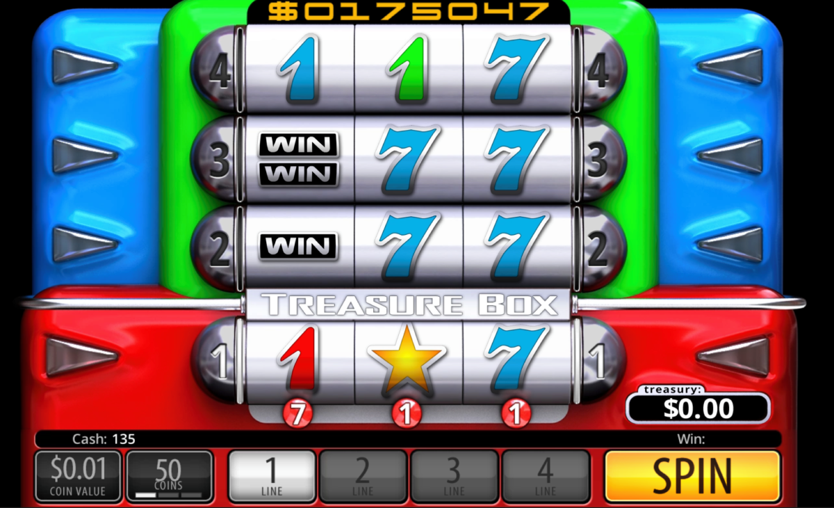 Treasure Box slot machine has the same type of strategy of multi-hand video poker games like Triple Play. When you begin to play Treasure Box, you have a total of four sets of reels. When you put the lever at the bottom of the slot reel, you can adjust some reels you want to play.