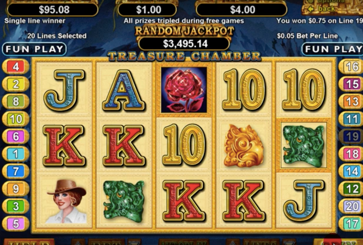 The Treasure Chamber slot machine is adventurous and features five reels with 20 pay lines. Realtime Gaming software powers of this real-series video slot that offer a random progressive jackpot, scatter wins, a wild symbol, bonus games, free spins, and multipliers.