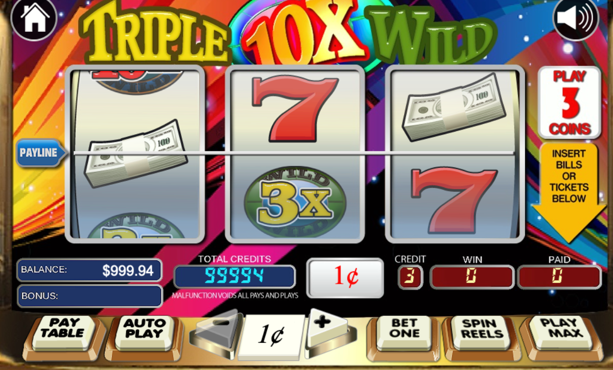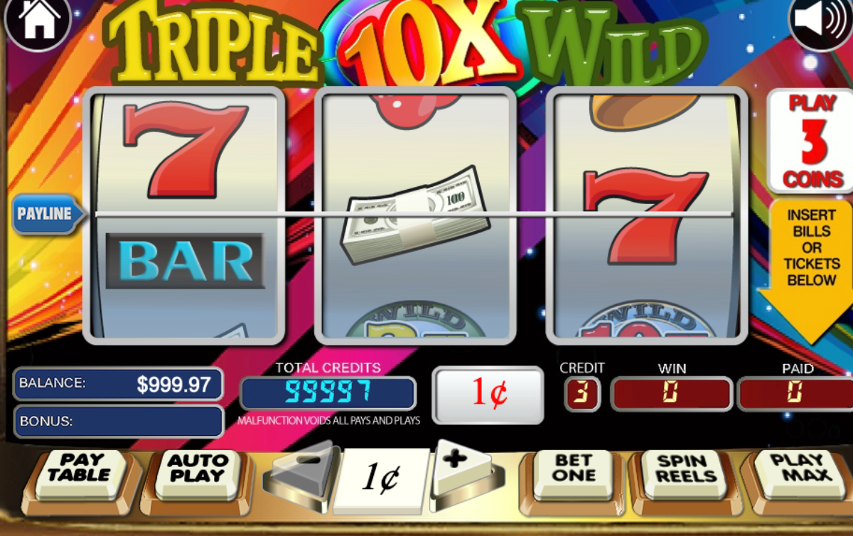 The biggest wins come when you land one, two or even three Triple 10 Wild” symbol on the reels. When you land one of the Triple 10 Wild symbols on the reels will multiply your initial bet ten thousand times! Even if you only land one Triple 10X Wild you will win $10,000 for every one dollar you are playing.
