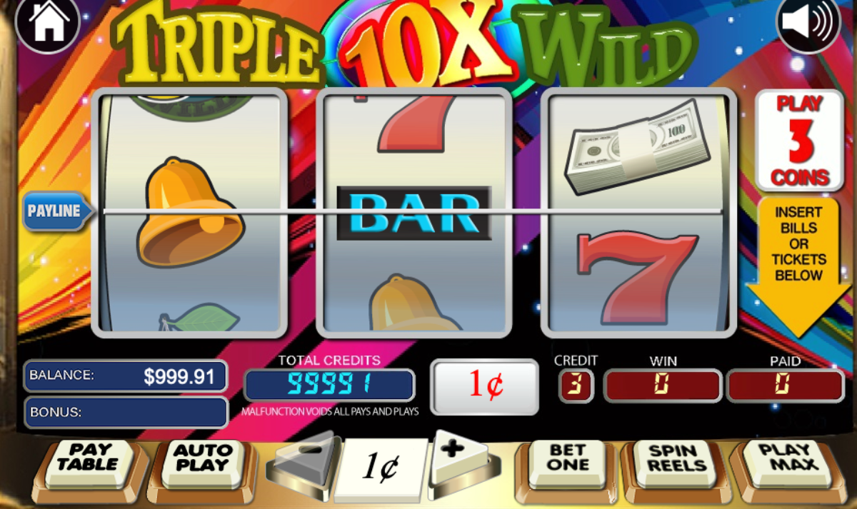The Triple 10X Wild slots game features three reels and one pay line. WGS software powers this classic slot machine that has bars and fruits like Cherries spinning the all 3 reels. Like the name suggests Ten Times Wild has a fresh fruit and vegetable theme and some great wins.
