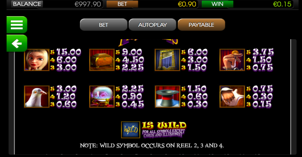 As the illusionist begins to perform, you’ll have to be patient and watch as three or more similar symbols appear in a row on any of the enabled paylines from left-to-right.