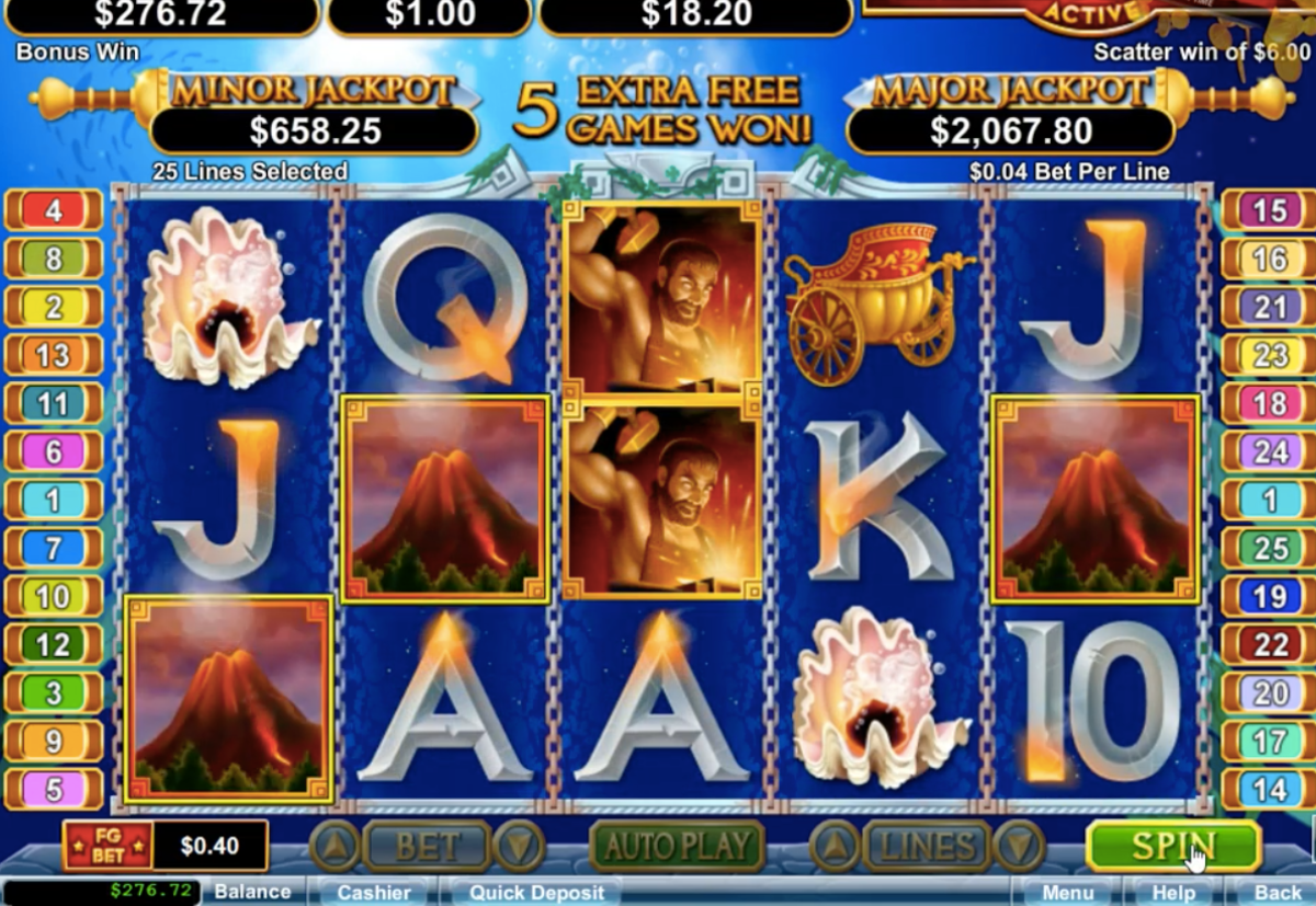 The main bonus feature in Vulcan is the Fire. Once it is triggered anywhere on the reels by volcano scatters it results to a bonus round of 15 free spins coupled with double payouts and the multiplier escalates each time the spins are retriggered. To enjoy the numerous and outstanding jackpots, payouts and many more.