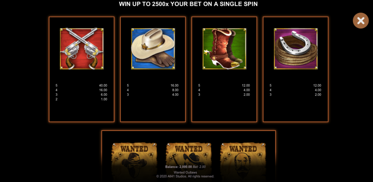 Are you interested in joining a group of bandits from the Wild West? You can give it your best shot and potentially ride off into the sunset with an abundance of cash thanks to the Wanted Outlaws slot machine. This game was created and produced by All41Studios in conjunction with Microgaming.