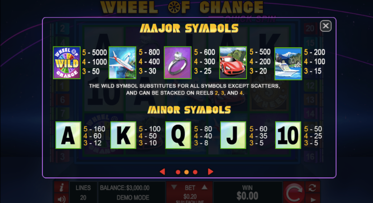 Score golden coin stacks, luxury yachts, fancy sports cars, and big piles of cash. Scoring money is a simple as landing three same symbols on the wheels. We reviewed the pay table by going to the upper right-hand side of the screen at any point in the game.