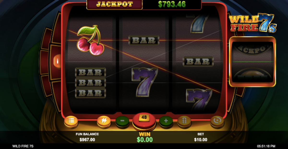 The Wild Fire 7s game has a jackpot that starts at $500 and gets triggered when the symbol lands on reel four.If you win a game, the amount of money you bet will increase. If you lose, it will get smaller.