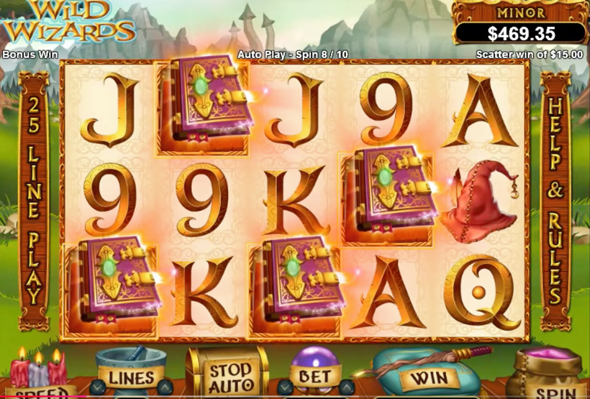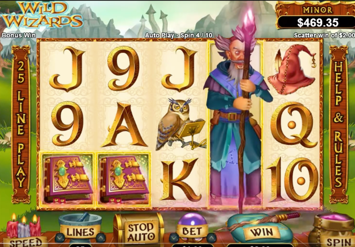 The Wild Wizards slots machine has five reels and 25 pay lines. Realtime Gaming (RTG) powers this game released in 2014. Wild Wizards has a large betting range to accommodate penny slot players as well as high rollers. You can bet anywhere from twenty-five cents all the way up to one hundred twenty-five dollars per spin!