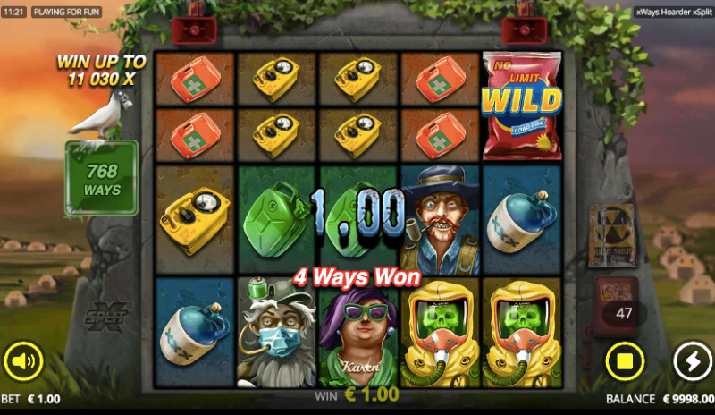 If you win, you will reach the top of the Hoarder meter. Then the whole game will change to Wasteland Free Spins.Four symbols will land during this top-tier bonus round, namely the 2 highest value object and character symbols and the 2 highest valued premium symbol.
